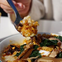 Amazing vibe! Solid food! I recommend the Mediterranean plate (it has eggs, fried pita, hummus, greens, and pickled onion). They also make a solid cup of coffee. I liked this place so much because it seems like they cater both to sit-down guests who want a cute meal, and coffee shop goers who just want to sit and work on their laptops. SUPER QUICK SERVICE too! It was impressive.